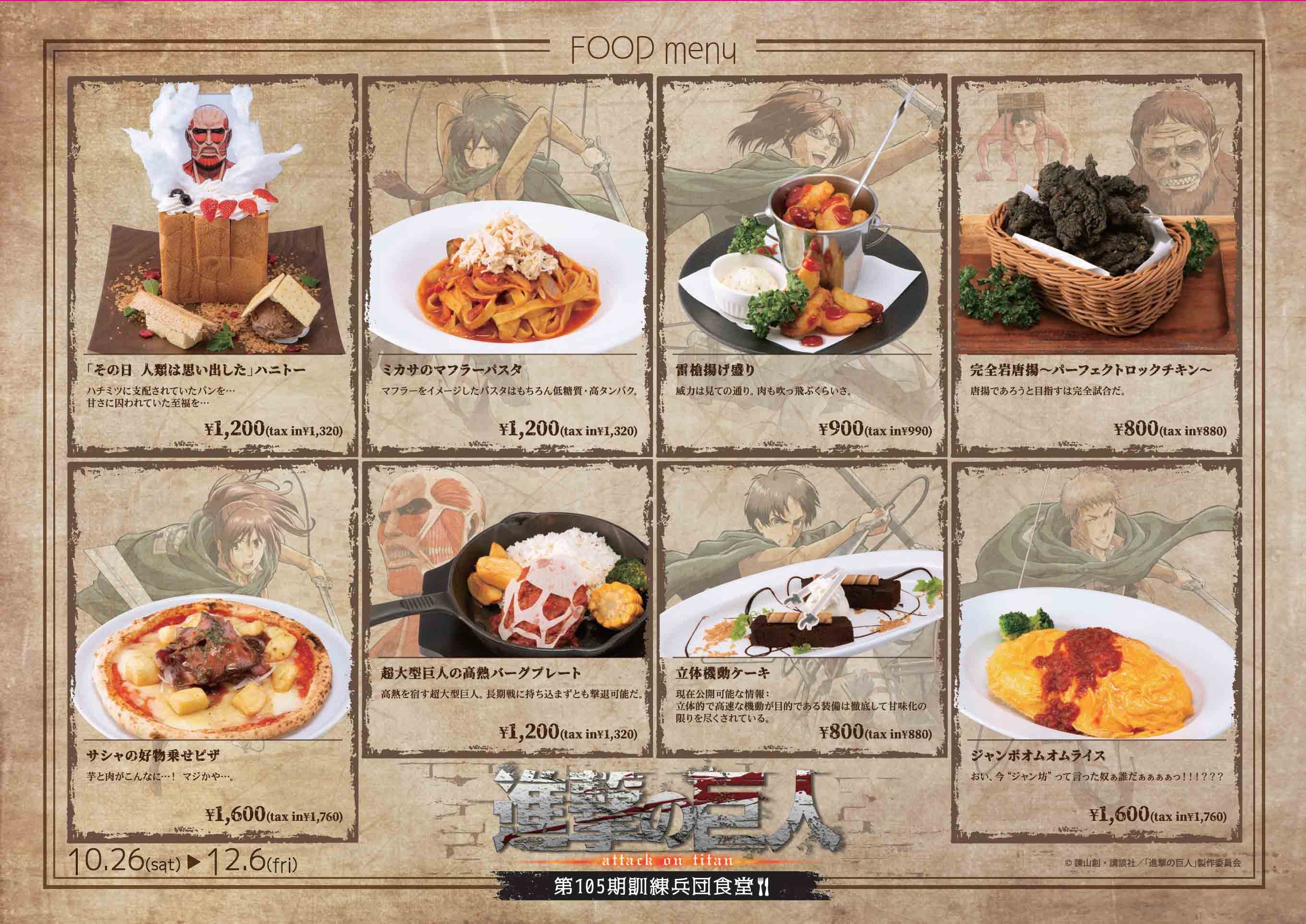 | メーカー | 第105期訓練兵団食堂 パセラコラボ 進撃の巨人「第105期訓練兵団食堂」OPEN |